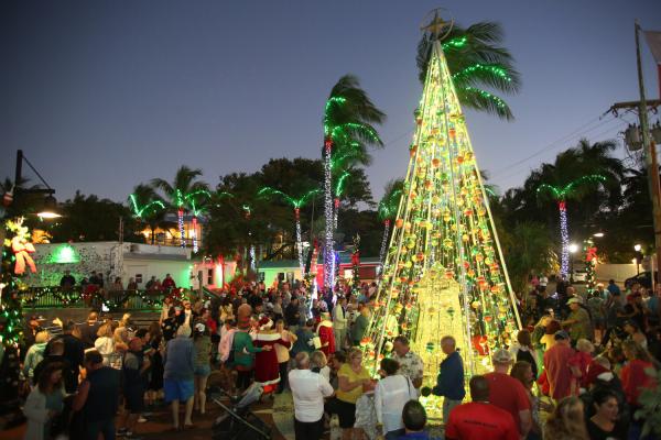 The evening begins with the lighting of the Fishing Buoy Christmas Tree at Greene and Elizabeth Streets — a uniquely Key West creation built from colorful, hand-painted fishing buoys collected from local artists and mariners. Then, stroll down to the Lobster Trap Christmas Tree at the foot of Margaret Street for its own lighting ceremony, featuring more island-themed artistry and plenty of photo ops!